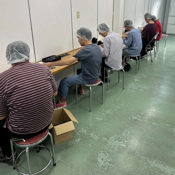 工場での施設外作業では、ひとつひとつの製品を丁寧に確認し、袋詰めを行っています。